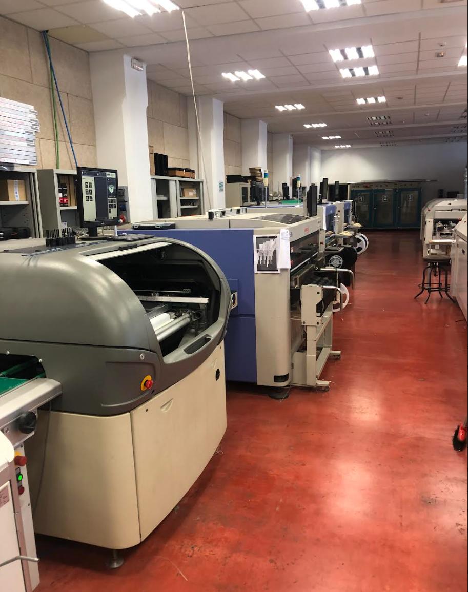 Toda la maquinaria es propia (Serigrafía, Pick & Place, horno, cámaras de secado, camaras de burn-in), por
